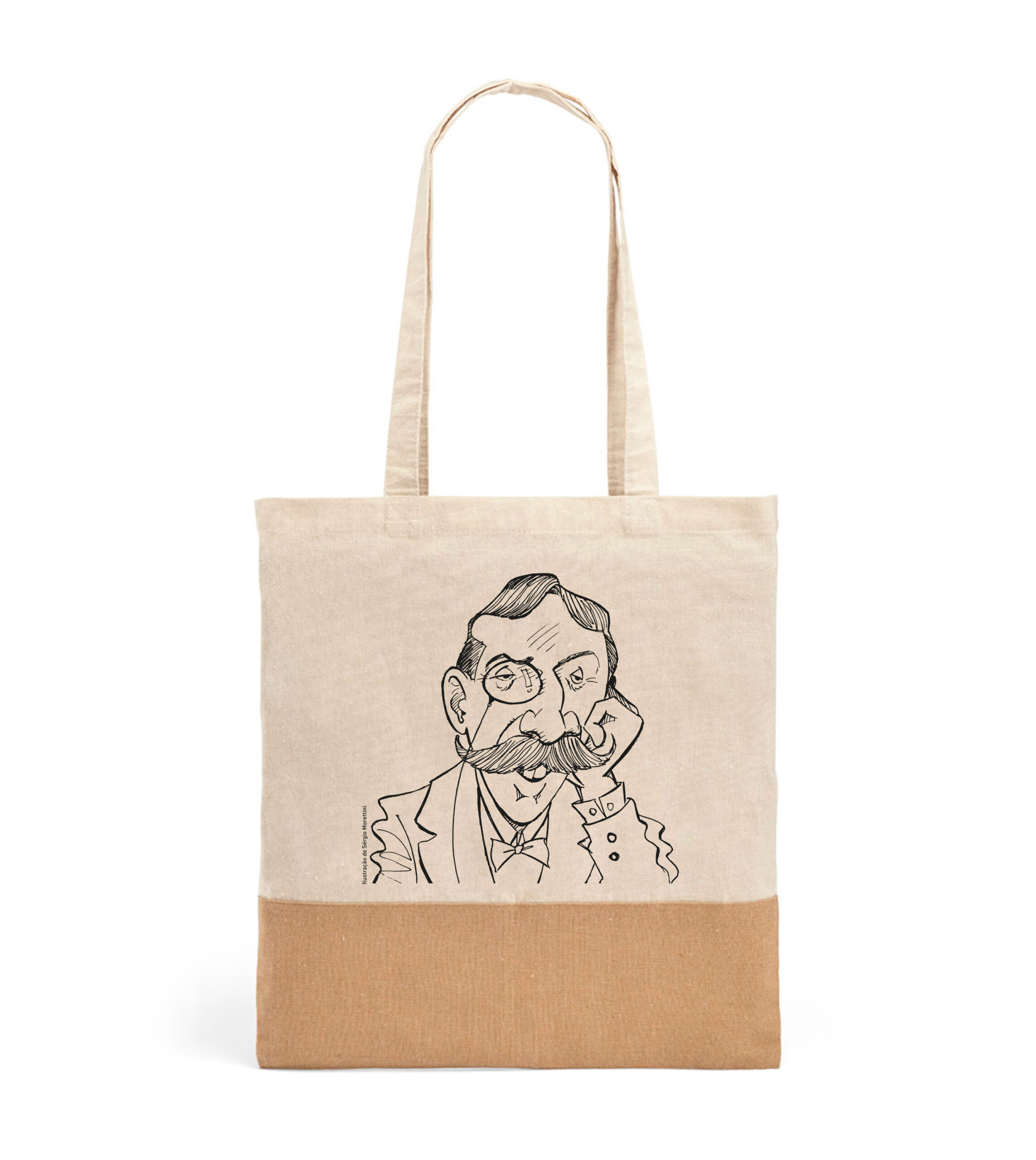 Saco 100% algodão (160 g/m²) com detalhe em imitação de juta e alças de 65 cm. 375 x 415 mm